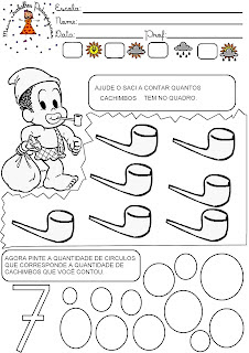 Atividades de números com o tema folclore, para estimular o entendimento do numeral com a quantidade, desenvolver atenção, concentração e a coordenação motora.